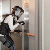 - Durchlaufen des Parcours mit Gleichgewichts-, Kraft- und Beweglichkeitsaufgaben mit dem Altersanzug